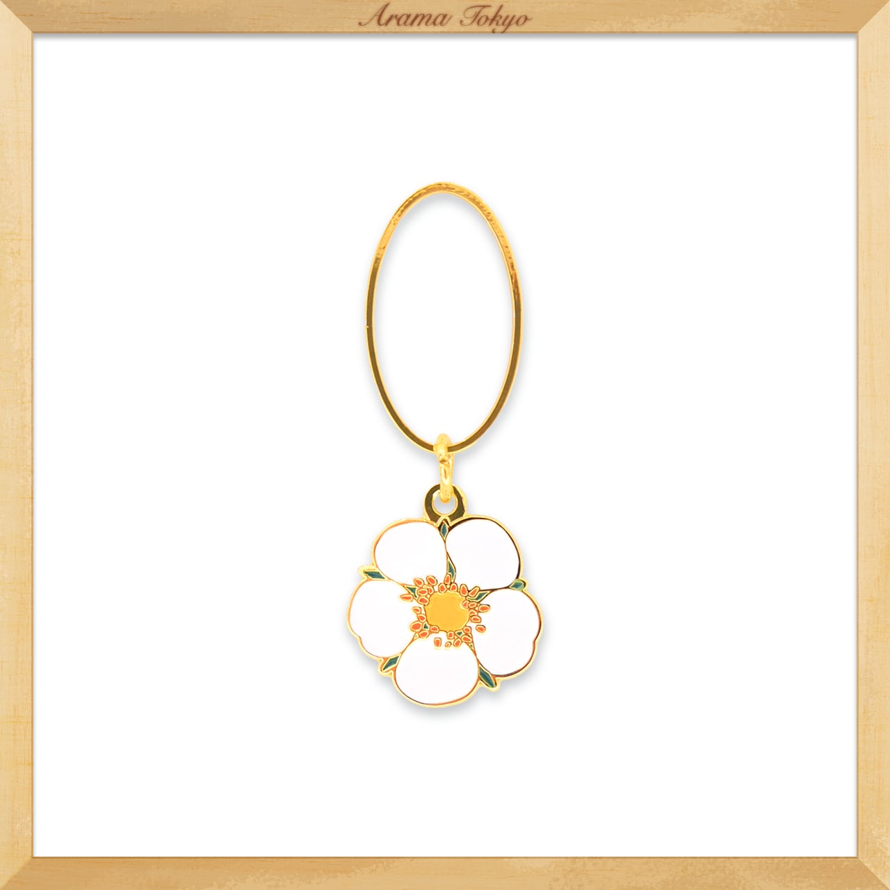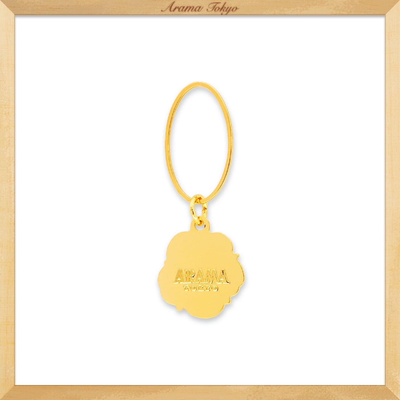 リングには「いちごのスカーフ」に描かれているいちごの白い花をチャームとしてあしらいました。小さなチャームの裏側にはブランドロゴが浮き出す形で入っていて可愛いです。